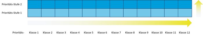 Bis vs | plus Version 8.x hat man die Möglichkeit 3 Prioritätsklassen einzusetzen. Ab der vs | plus Version 8.1 wurde die Anzahl Klassen auf 12 erhöht.