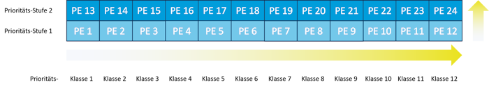 Abbildung 28: 6 Prioritätselemente in 3 Klassen und 2 Stufen