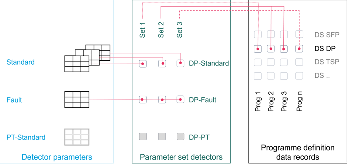 Various groups of detector parameters can be created for the detector in the tool used for parametrisation. Several sets can also be created for each group (standard). The number or which group is required depends on the topology of the intersection (no standard PT message points).